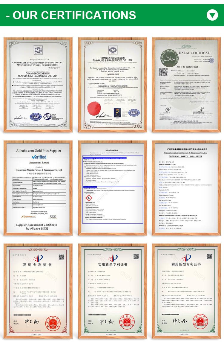 . Nossa empresa é muito competitiva entre as empresas chinesas de aromas. Além de aromas e fragrâncias comuns, nossa tecnologia de imitação de fragrâncias também é muito afirmada, e o número de fragrâncias de imitação também é o mais completo. Nossos produtos foram vendidos para mais de 100 países.* Podemos imitar